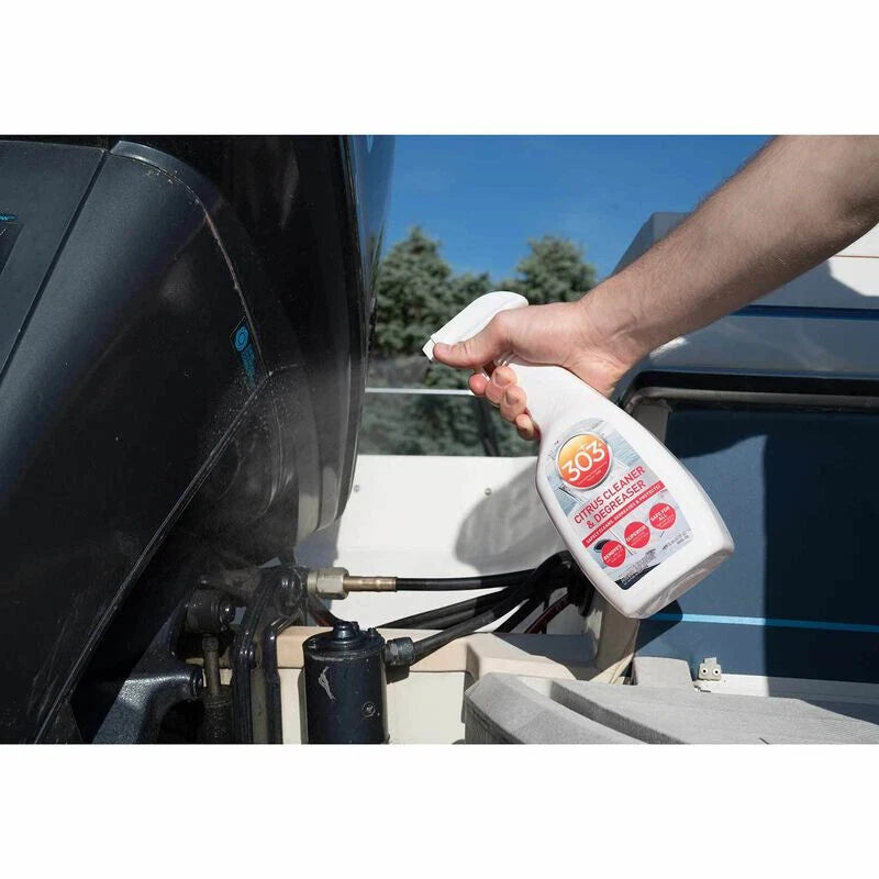 303 Marine Citrus Cleaner & Degreaser safely brightens and rejuvenates surfaces by removing dirt, grease, oil, and much more.